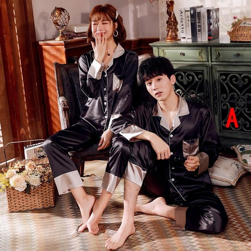 上下セット パジャマ 長袖 ペアルック お揃い レディース メンズ ペアパジャマ ネグリジェ プレゼント カップルお揃い 部屋着 寝巻き 大きいサイズ サテン 通販 Lineポイント最大get Lineショッピング